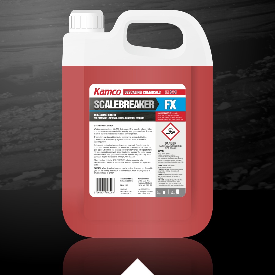 Scalebreaker FX Product code: xxx High strength descaling liquid Cleans systems in one visit Rapidly dissolves limescale, rust and corrosion deposits Available in 5 litres and 10 litres View PDF Data SheetClick to download View PDF Safety Data SheetClick to download Book A Call Need Some Help?